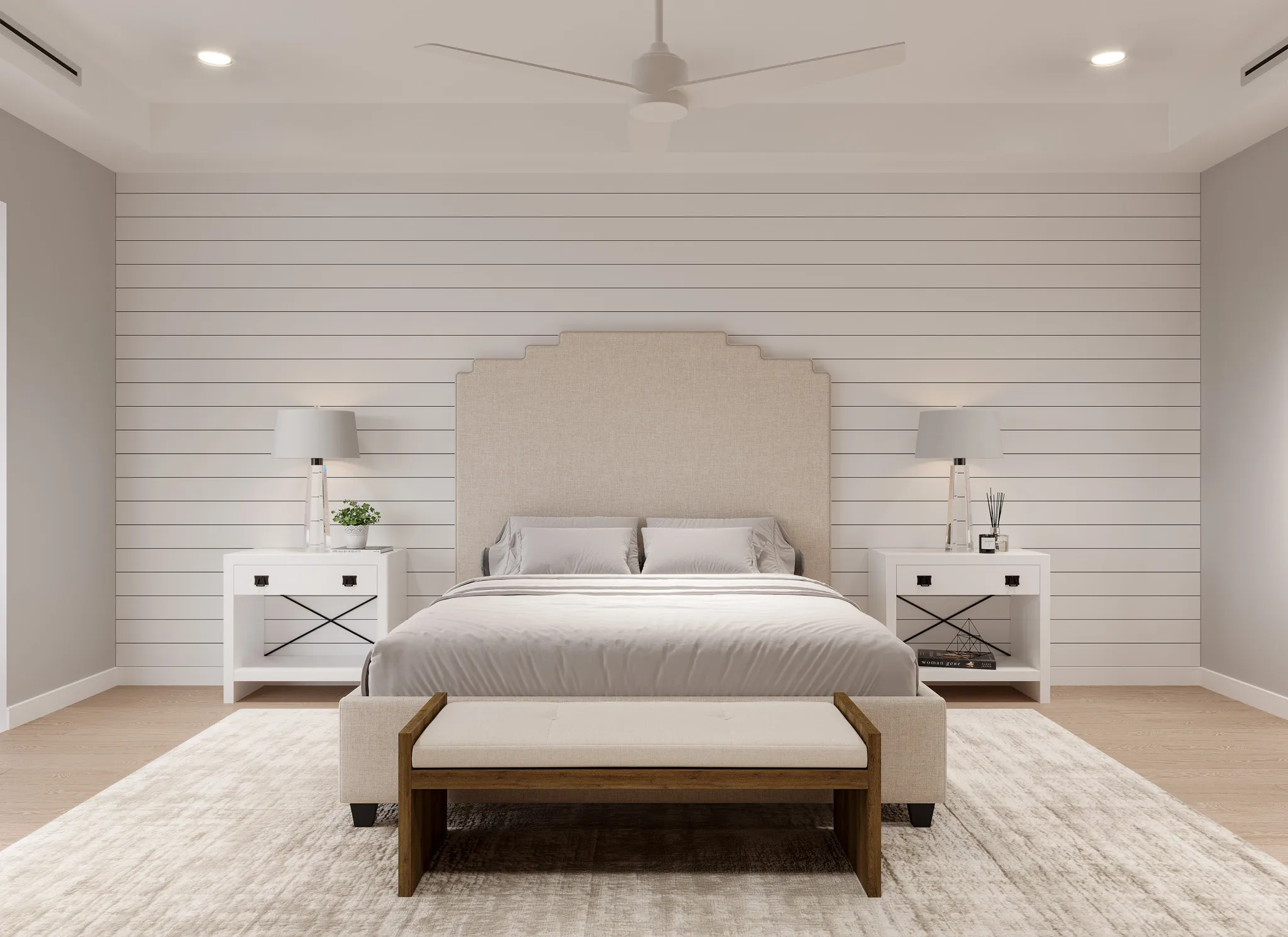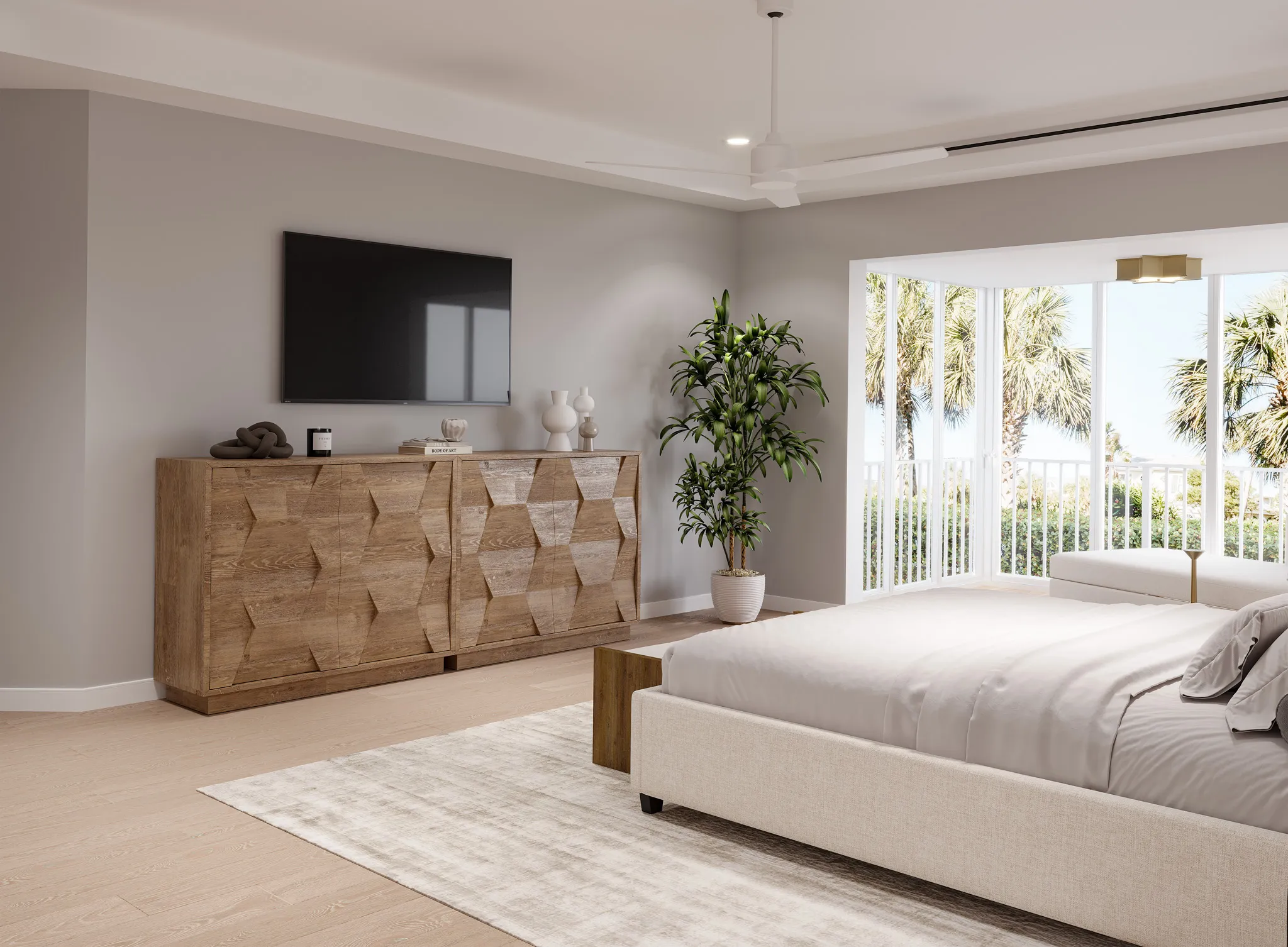 Renova Signature Projects delivers a serene and sophisticated bedroom retreat with clean lines and natural warmth.
